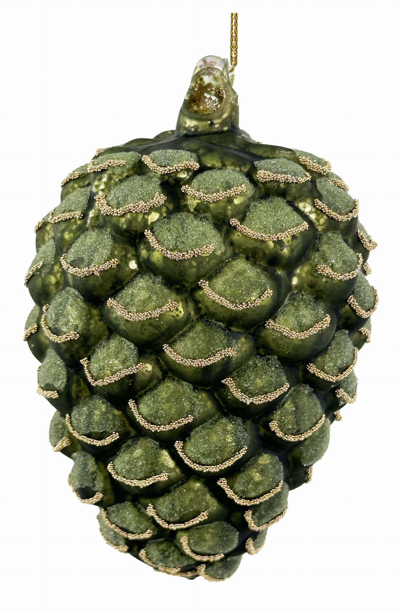 Bombka szyszka, zielony ze złotem, 11 cm