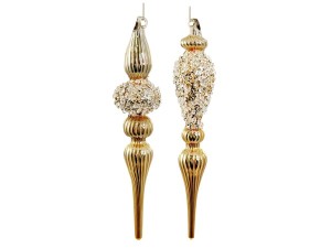 2 szklane bombki choinkowe, złote sople, 20 cm