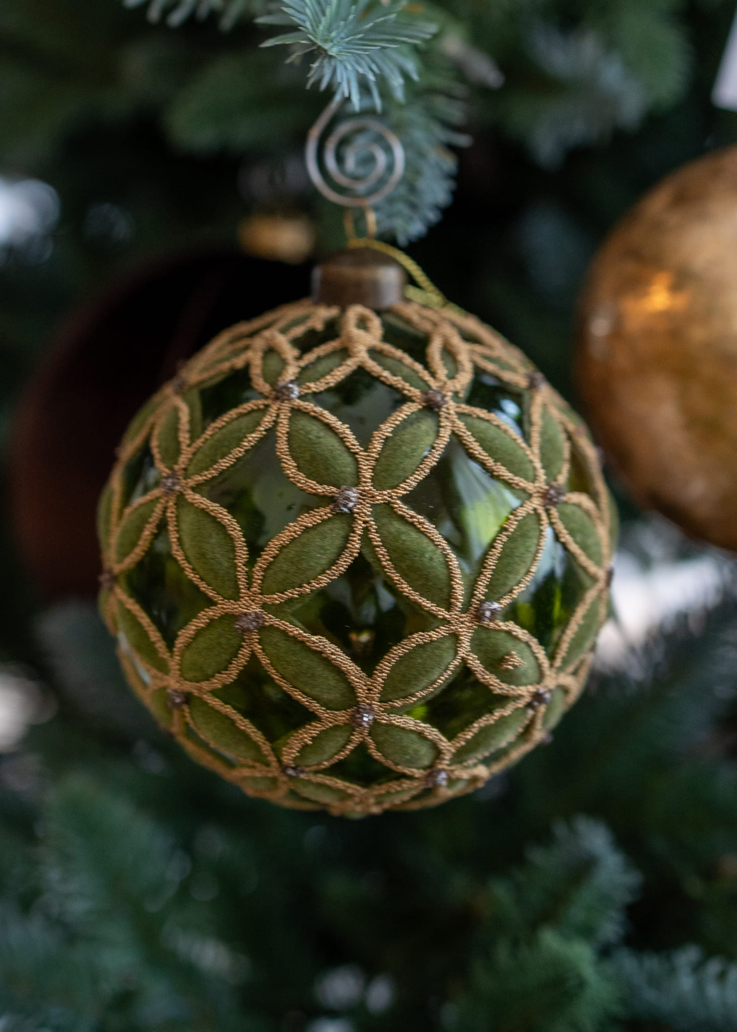 2 szklane bombki choinkowe z dodatkiem zielonego weluru, 10 cm