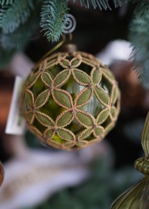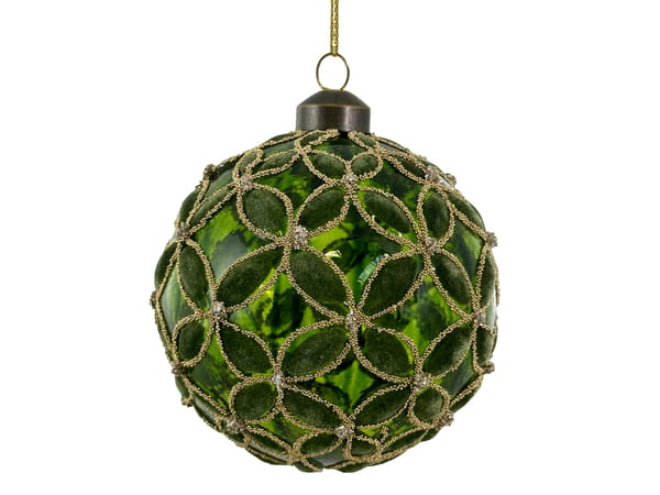 2 szklane bombki choinkowe z zielonym aksamitem, 10 cm