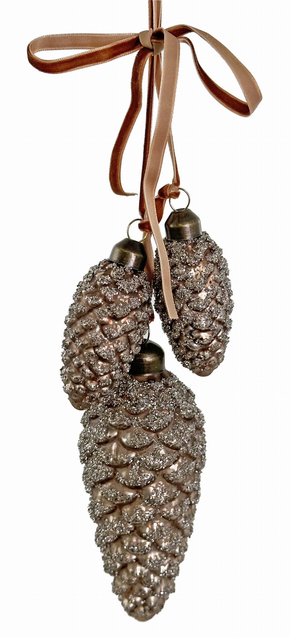 3 bombki, szklane szyszki, antyczny brąz,30 cm
