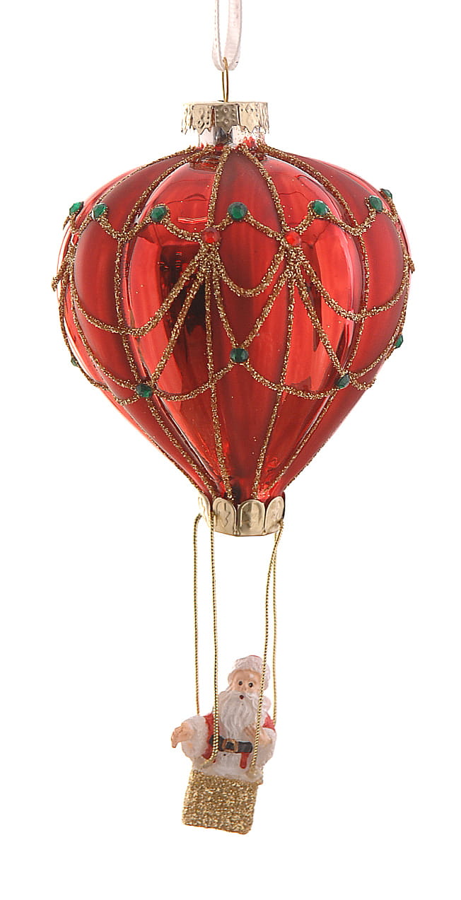 Szklana bombka w kształcie balona z koszem to wyjątkowa ozdoba, która zachwyca lekkością i subtelnym urokiem. Ręcznie zdobiona, doskonale sprawdzi się nie tylko na choince, ale także jako uroczy element dekoracyjny w pokoju dziecięcym.