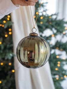 Stylowa bombka z wysokiej jakości szkła w odcieniu oliwkowej zieleni to elegancka ozdoba choinkowa klasy premium. Delikatne pionowe żłobienia i subtelny połysk nadają jej wyjątkowego charakteru. Idealnie komponuje się z dekoracjami w złocie, beżu, brązie i naturalnych barwach, tworząc harmonijną, świąteczną aranżację.