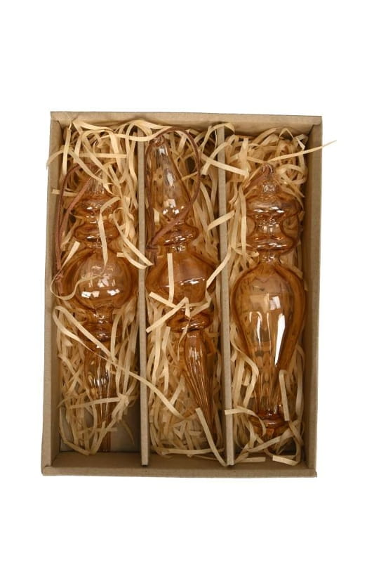 Bombka choinkowa szklana, sople, jasny brąz, 3 szt.