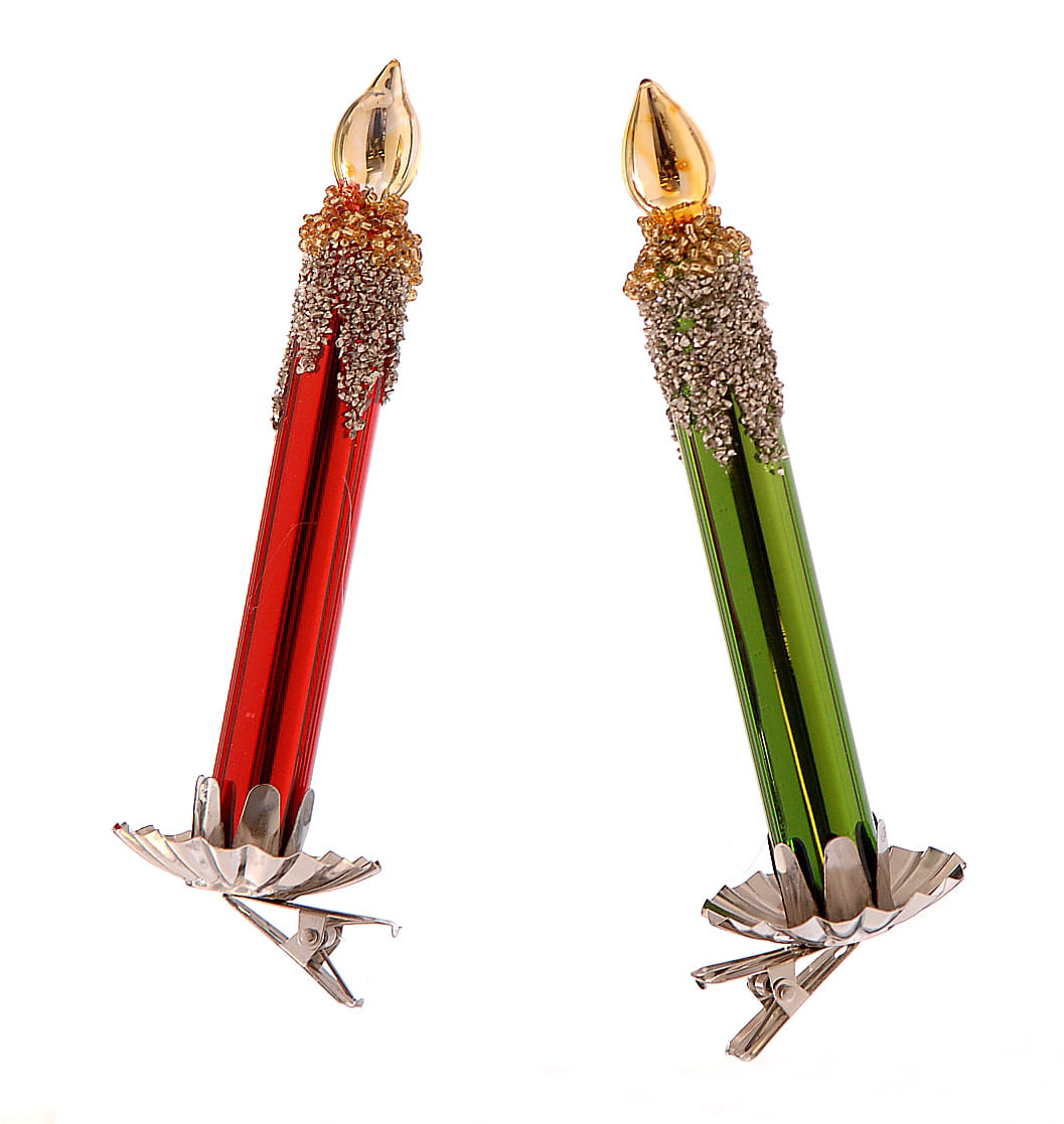 Bombka świeczka ze zdobieniem na klipsie, kolor zielony, 13cm - 1 sztuka