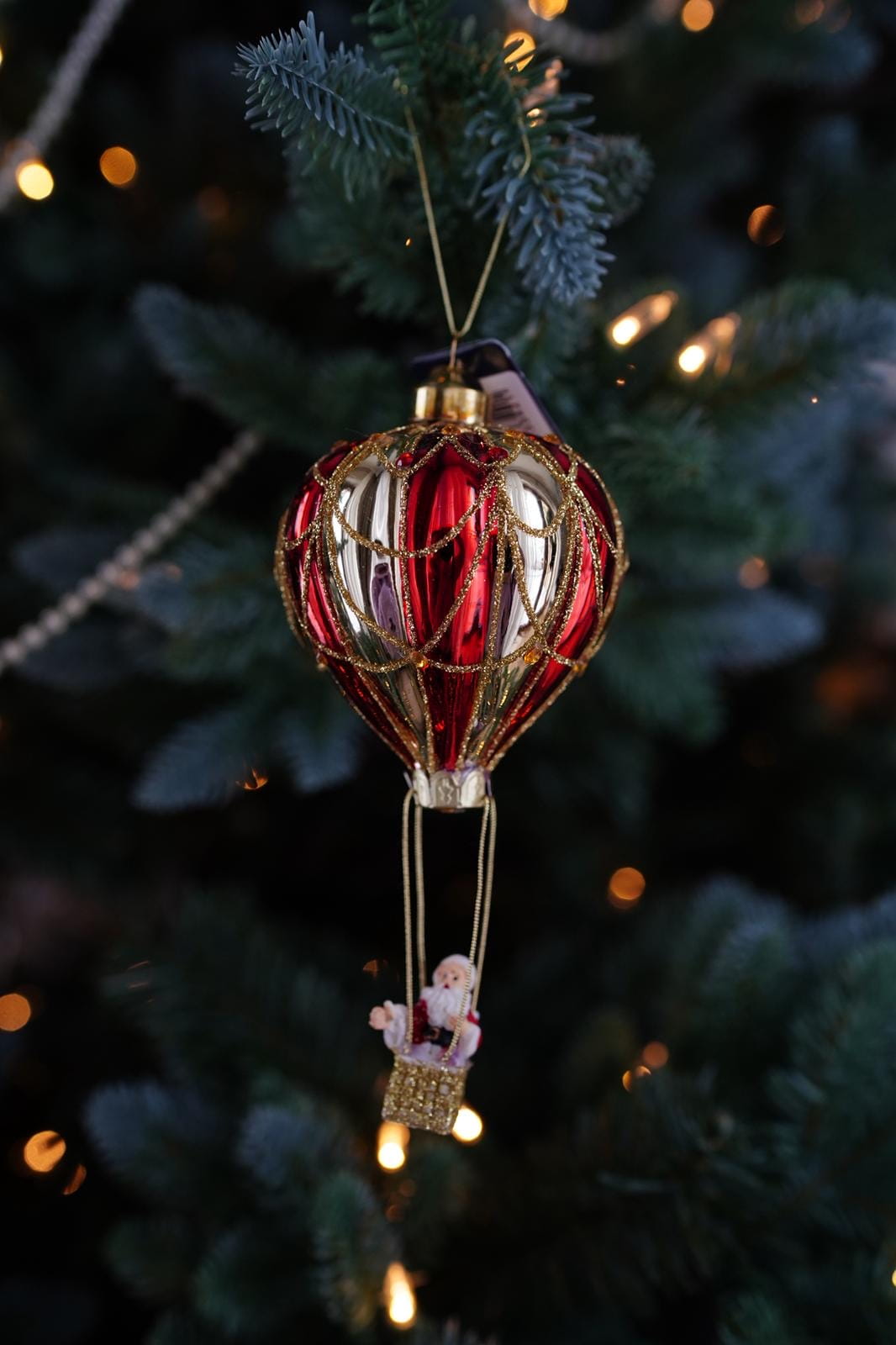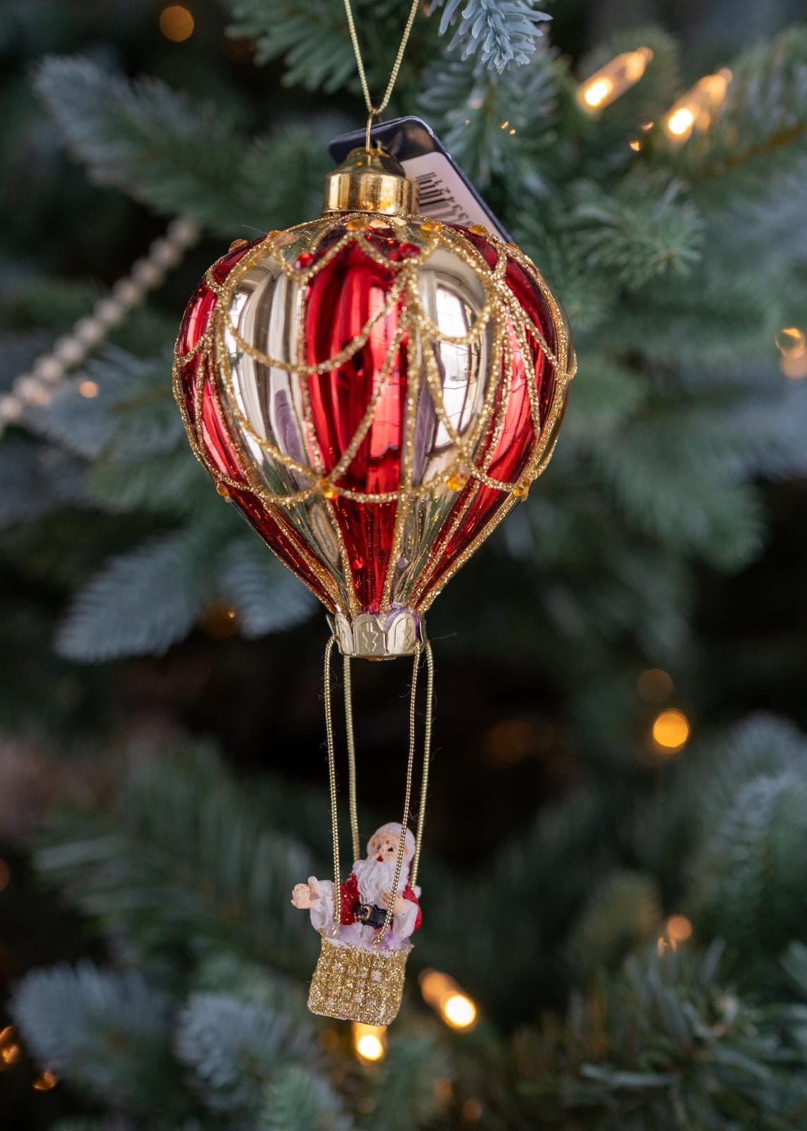 Szklana bombka w kształcie balona z koszem to wyjątkowa ozdoba, która zachwyca lekkością i subtelnym urokiem. Ręcznie zdobiona, doskonale sprawdzi się nie tylko na choince, ale także jako uroczy element dekoracyjny w pokoju dziecięcym.