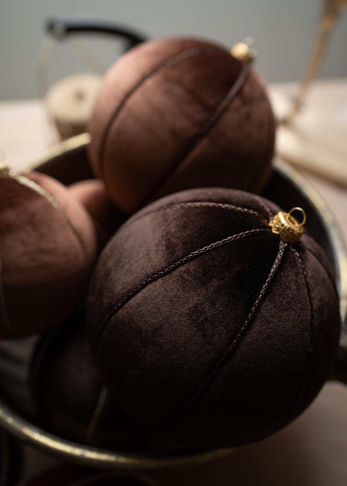 Bombka welurowa brązowa hand made Espresso śr. 12 cm