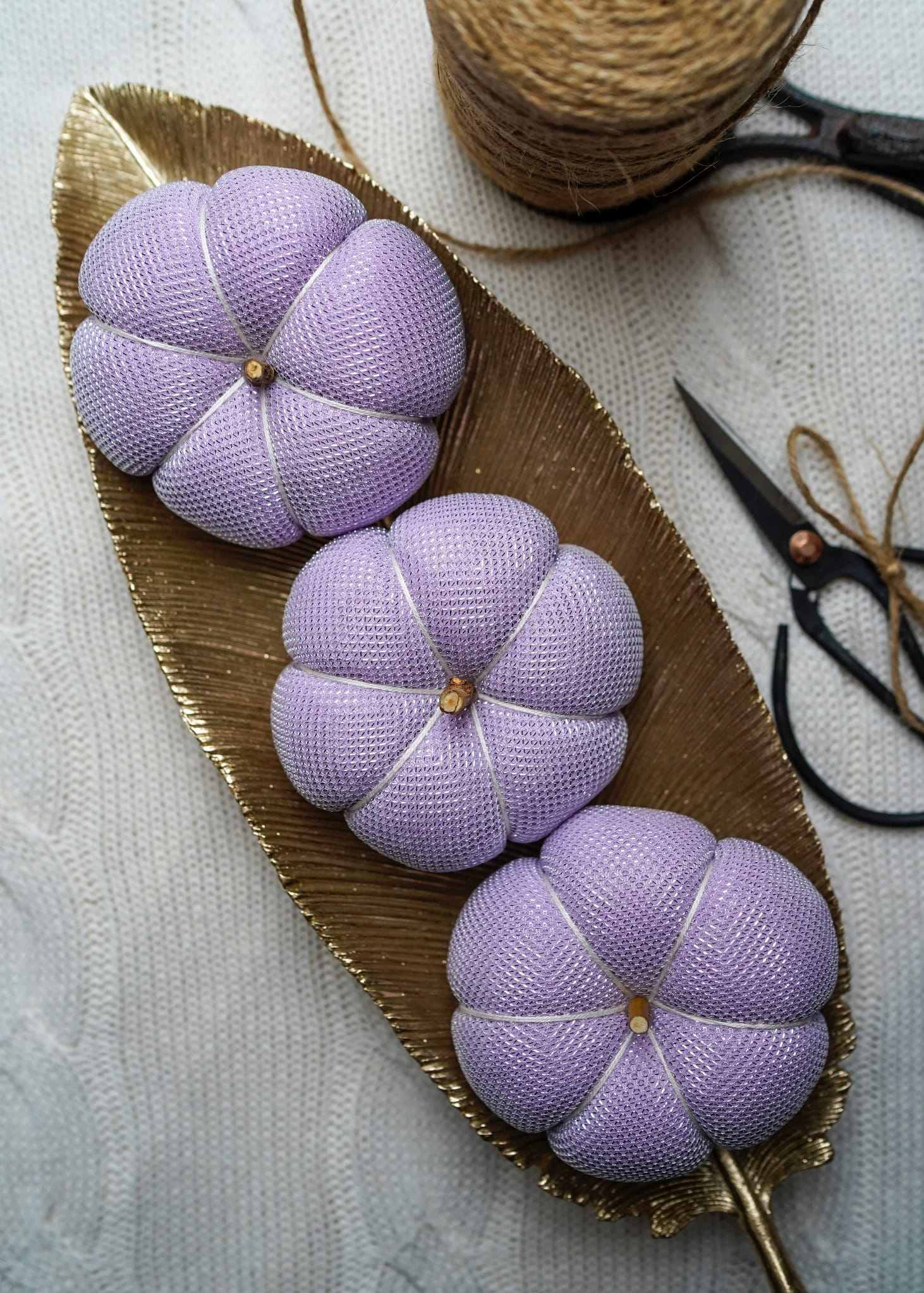 Dynia welurowa ozdobna, lawendowa z połyskiem