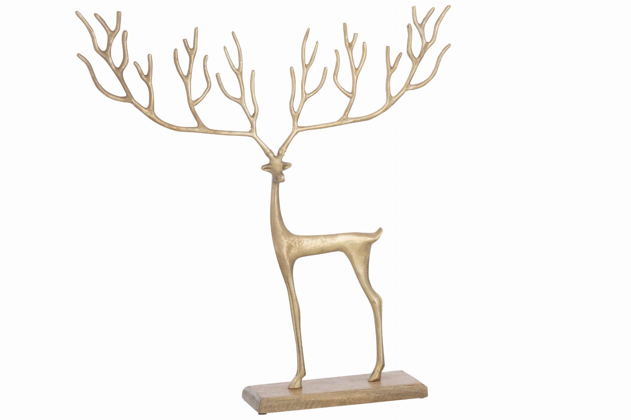 Podkreśl świąteczną atmosferę swojego domu dzięki zachwycającemu, złotemu, metalowemu jeleniowi z dużym porożem. Ten wyjątkowy element został pieczołowicie wykonany, aby uwydatnić misterne detale i majestatyczną sylwetkę, która emanuje elegancją i urokiem. Złote wykończenie dodaje luksusowego akcentu, czyniąc go wyjątkowym dodatkiem do każdego wnętrza. Duży metalowy jeleń z porożem jest wykonany z metalu, co gwarantuje trwałość i ekskluzywny wygląd.