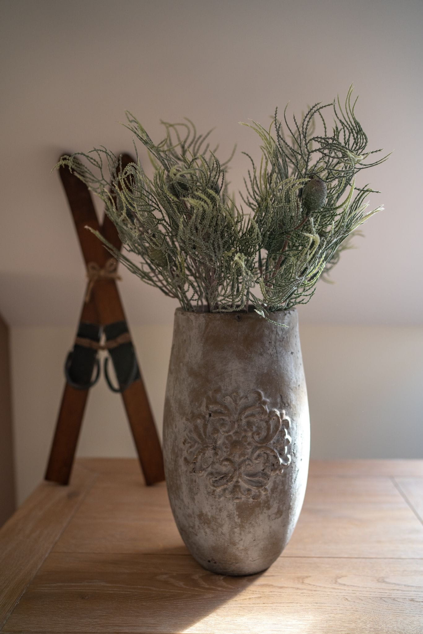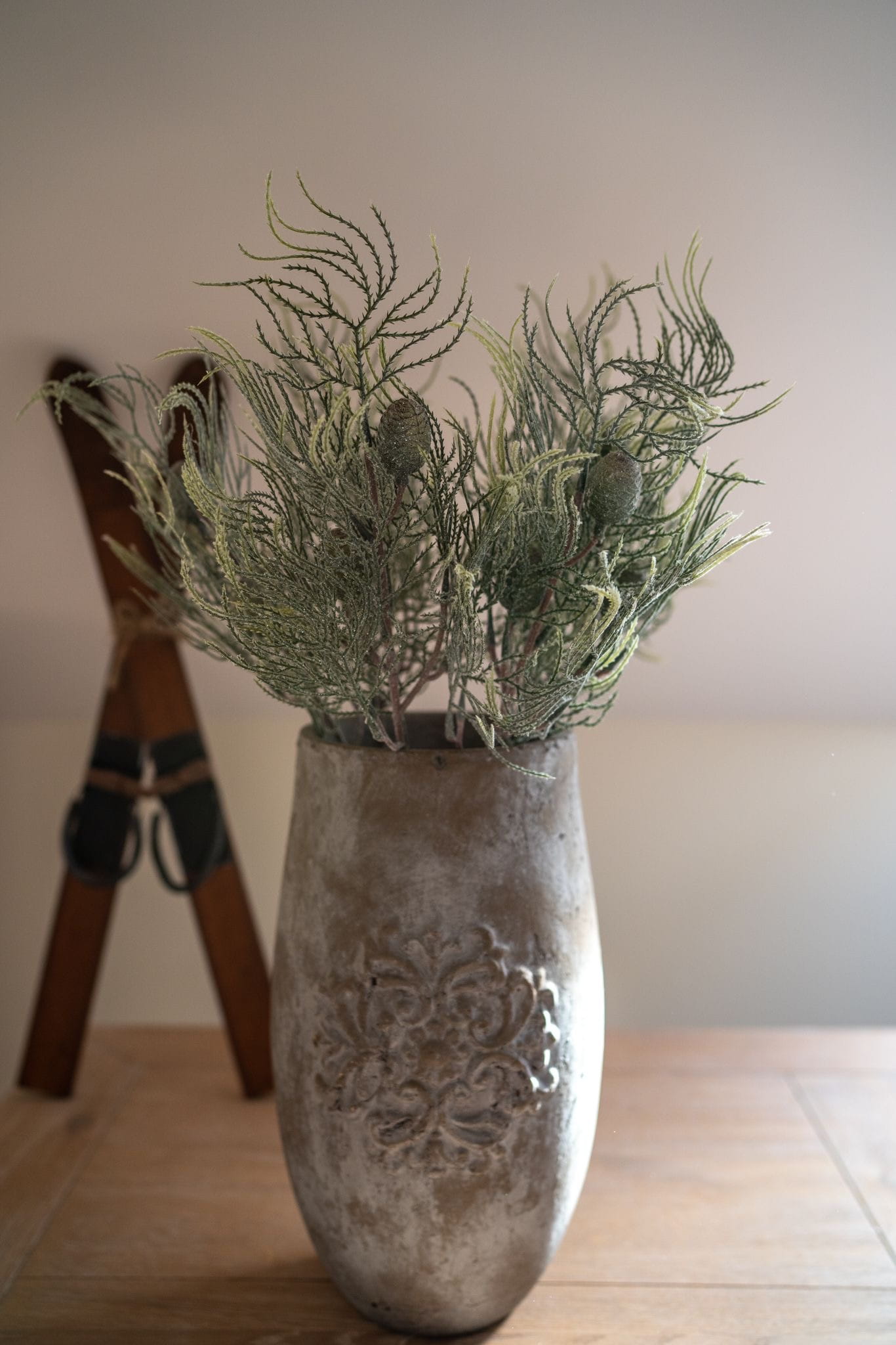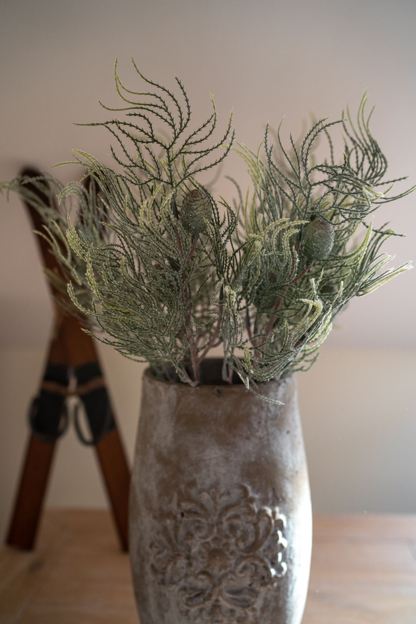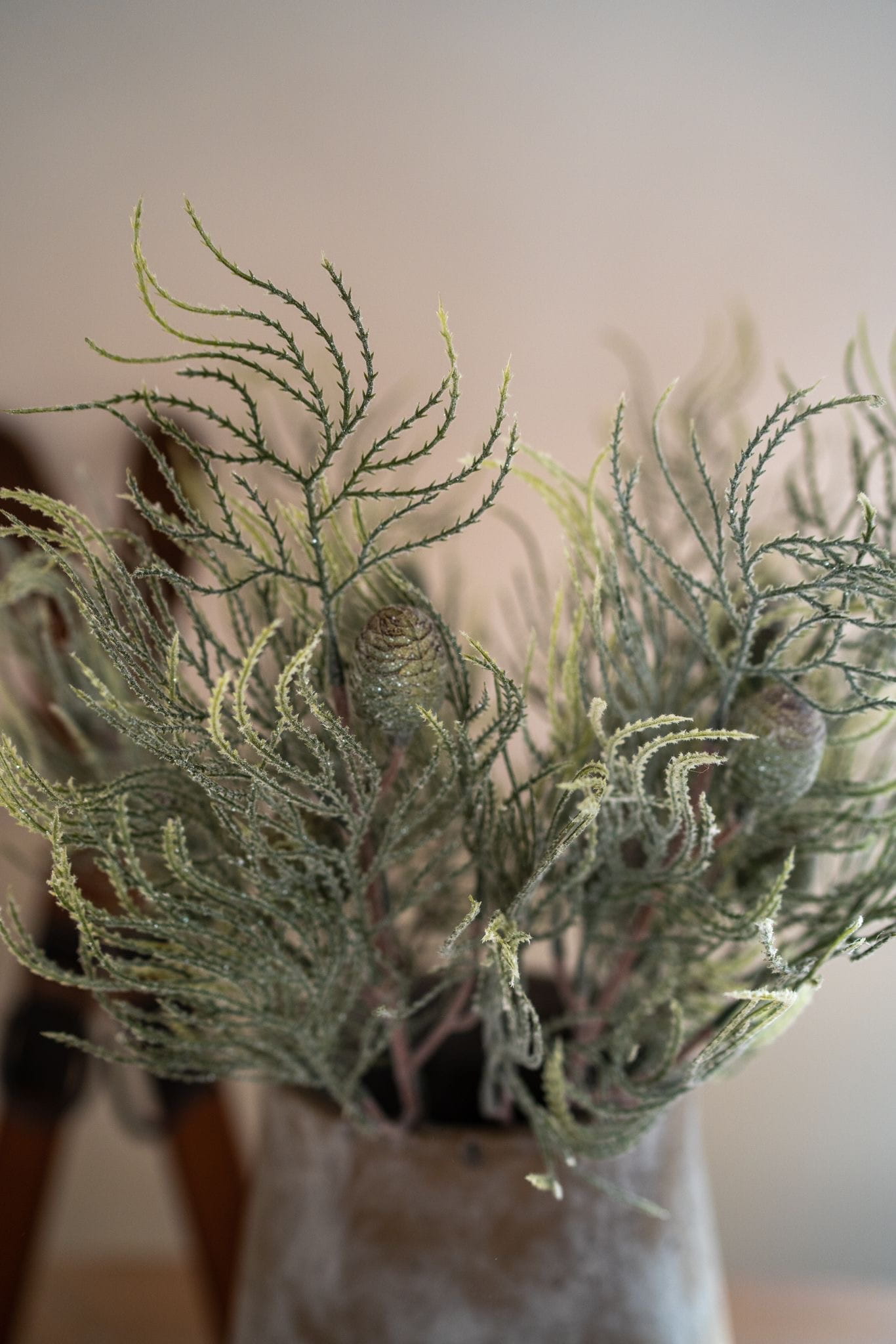 Stwórz magiczną zimową atmosferę dzięki naszym dekoracyjnym gałązkom cyprysu, subtelnie pokrytym efektem szronu i delikatnym brokatem i szyszkami. To doskonała baza do tworzenia wieńców, stroików i innych świątecznych aranżacji.