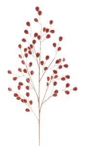 Gałązka z koralikami w kształcie kropli można wkomponować do choinek, wieńców świątecznych, świeczników lub kompozycji kwiatowych. Wyróżni się także swobodnie umieszczona na świątecznym stole. Nadaje się również do produkcji fascynatorów, koron, wianków i innych akcesoriów do włosów, dzięki drutom z łatwością można ją formować.