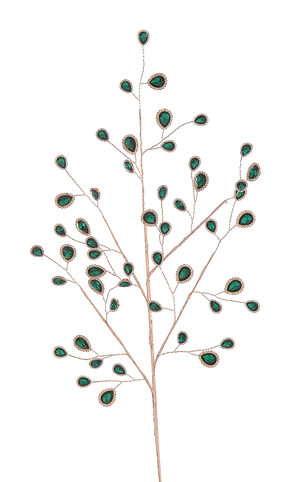 Gałązka złota z zielonymi kamieniami, 76 cm