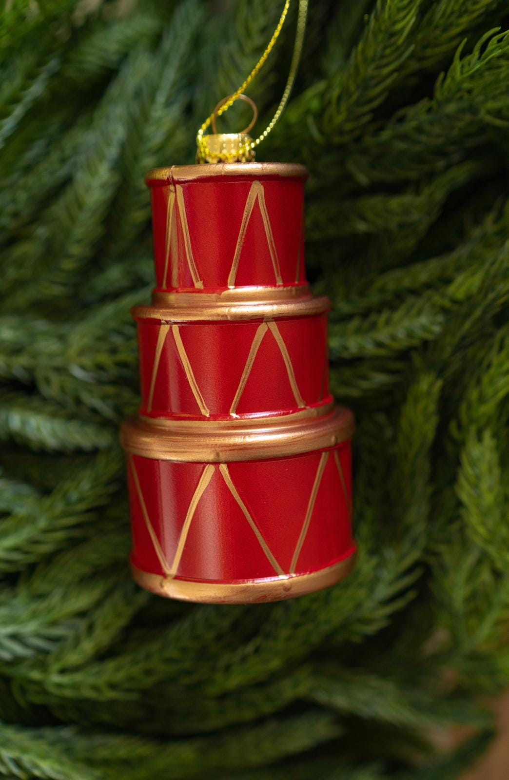 Zawieszka w kształcie bębenka to pełna uroku ozdoba świąteczna, idealna dla miłośników klasycznych, oryginalnych dekoracji. Ręcznie zdobiona i starannie wykonana, będzie pięknie prezentować się na choince, w stroiku lub świątecznej aranżacji wnętrza.