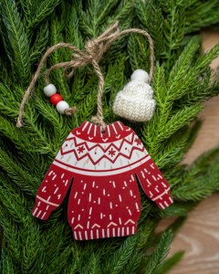 Ozdoba choinkowa z drewna sweterek