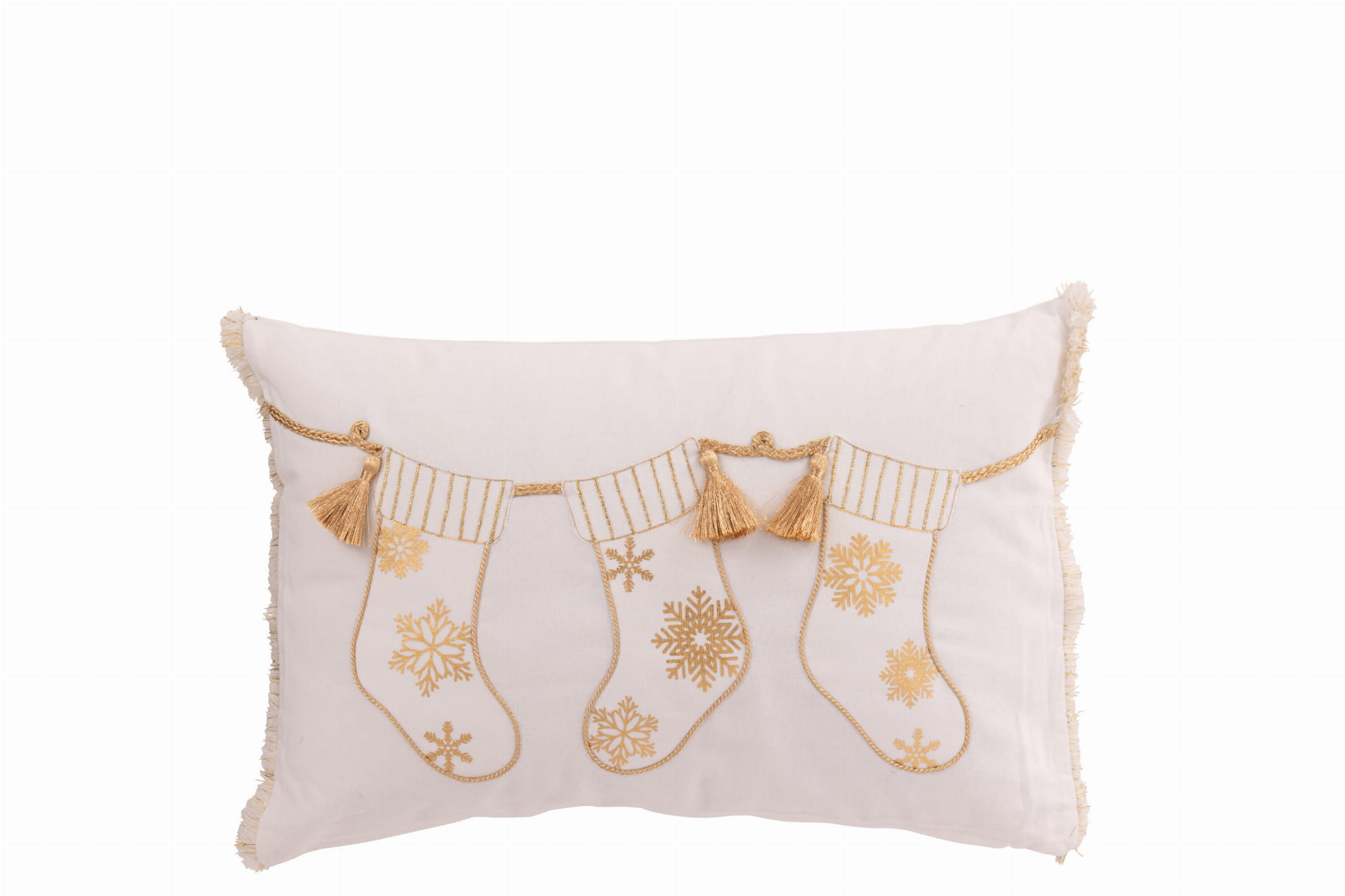 Poduszka, świąteczne skarpety, biel-złoto, 45cmx30 cm