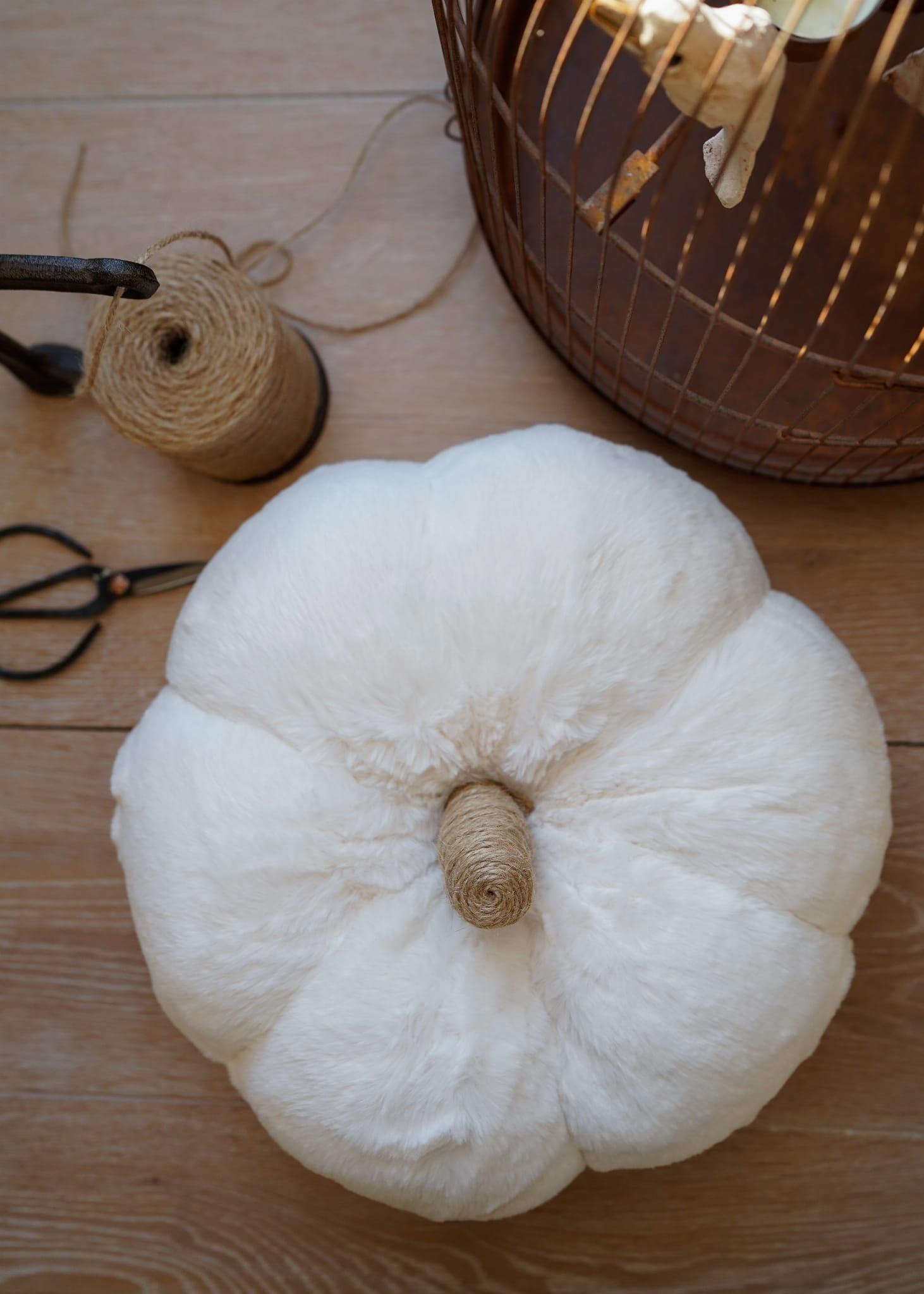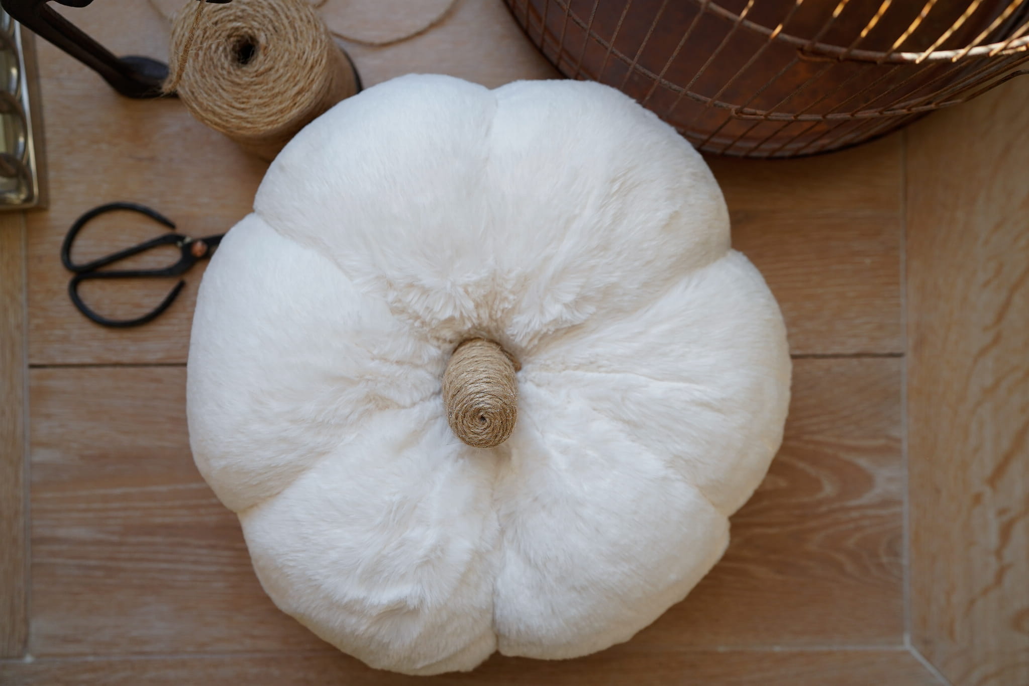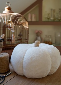 Ręcznie wykonana dynia, poduszka z jutowym ogonkiem.