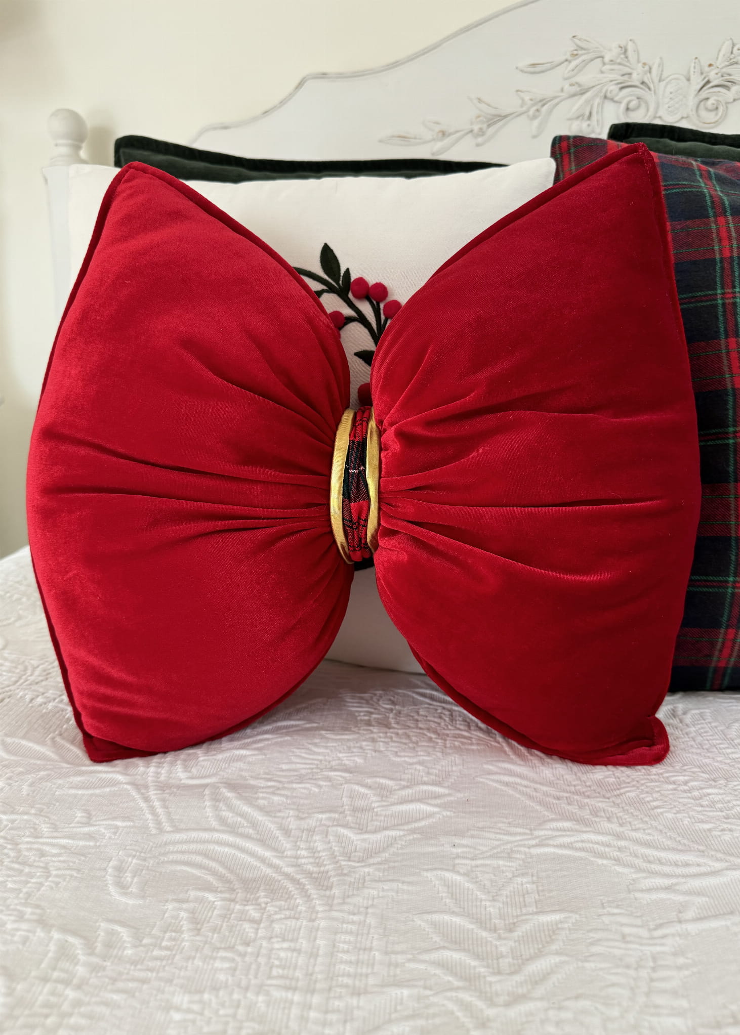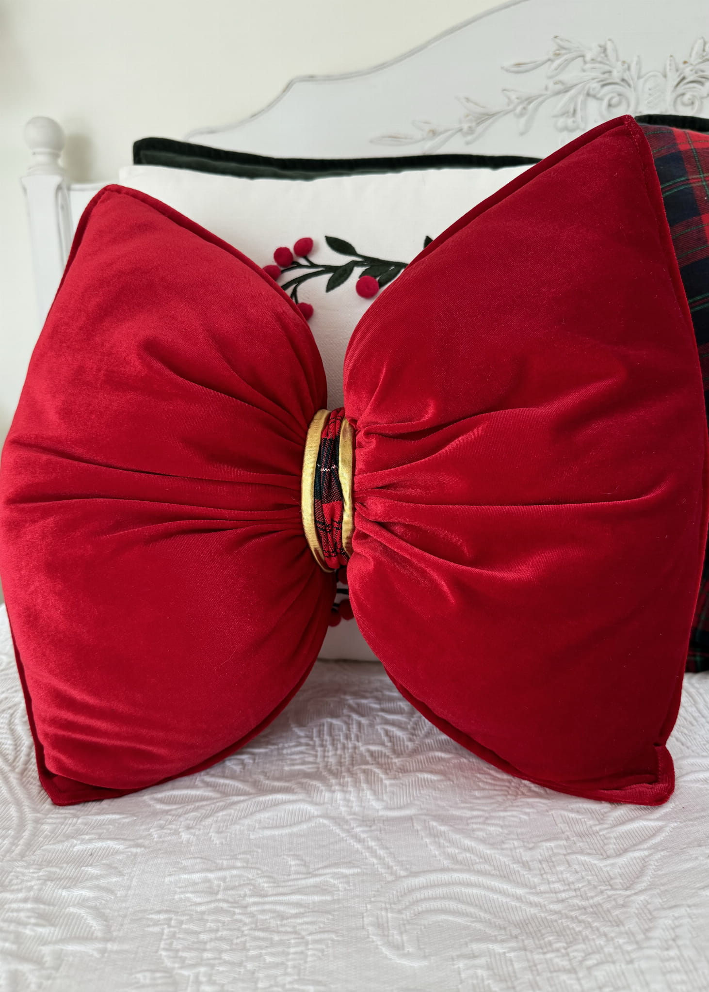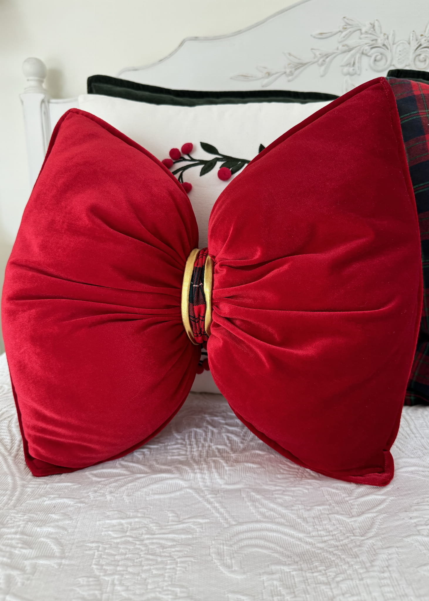 Poduszka świąteczna kokarda, czerwona