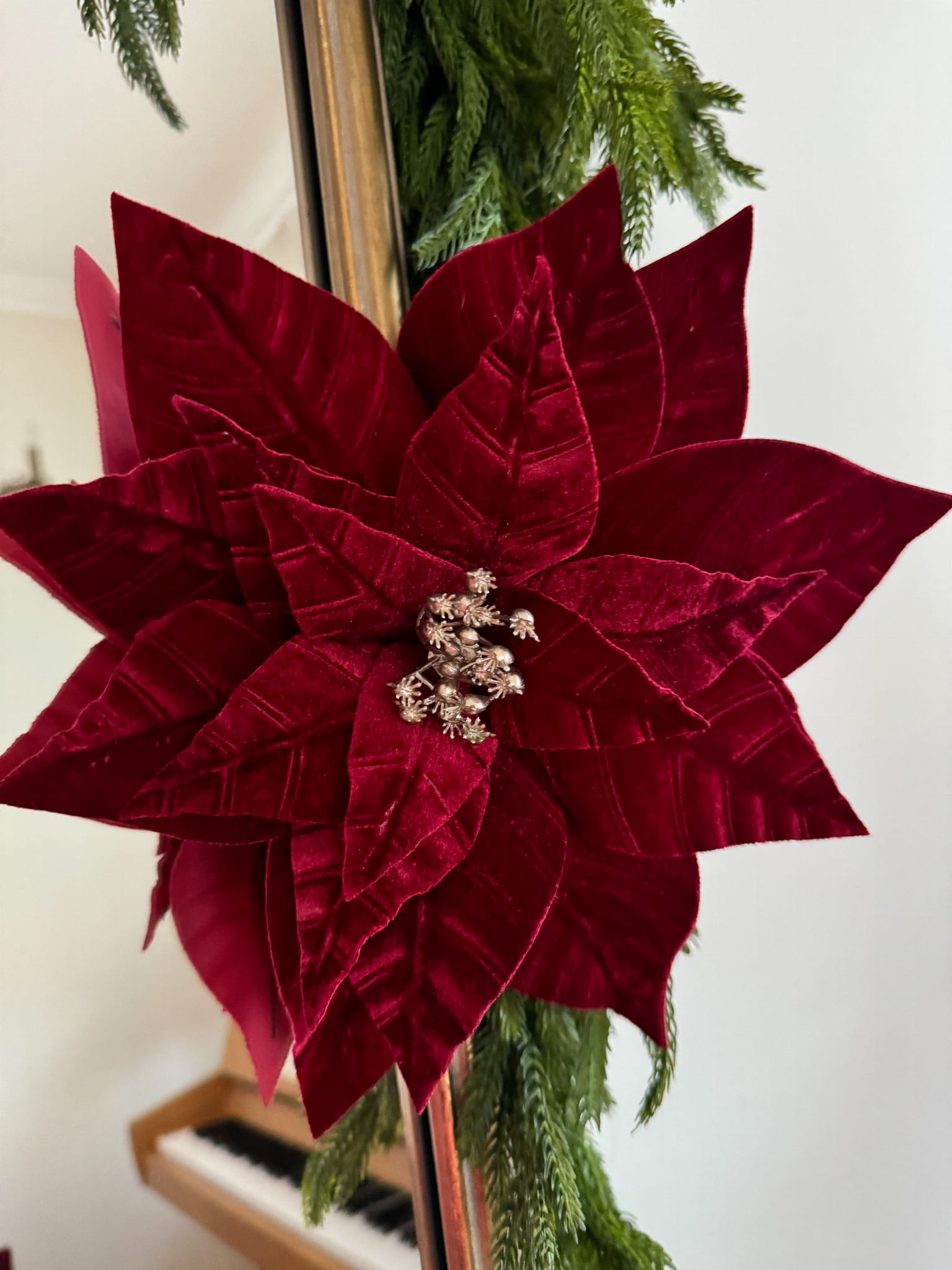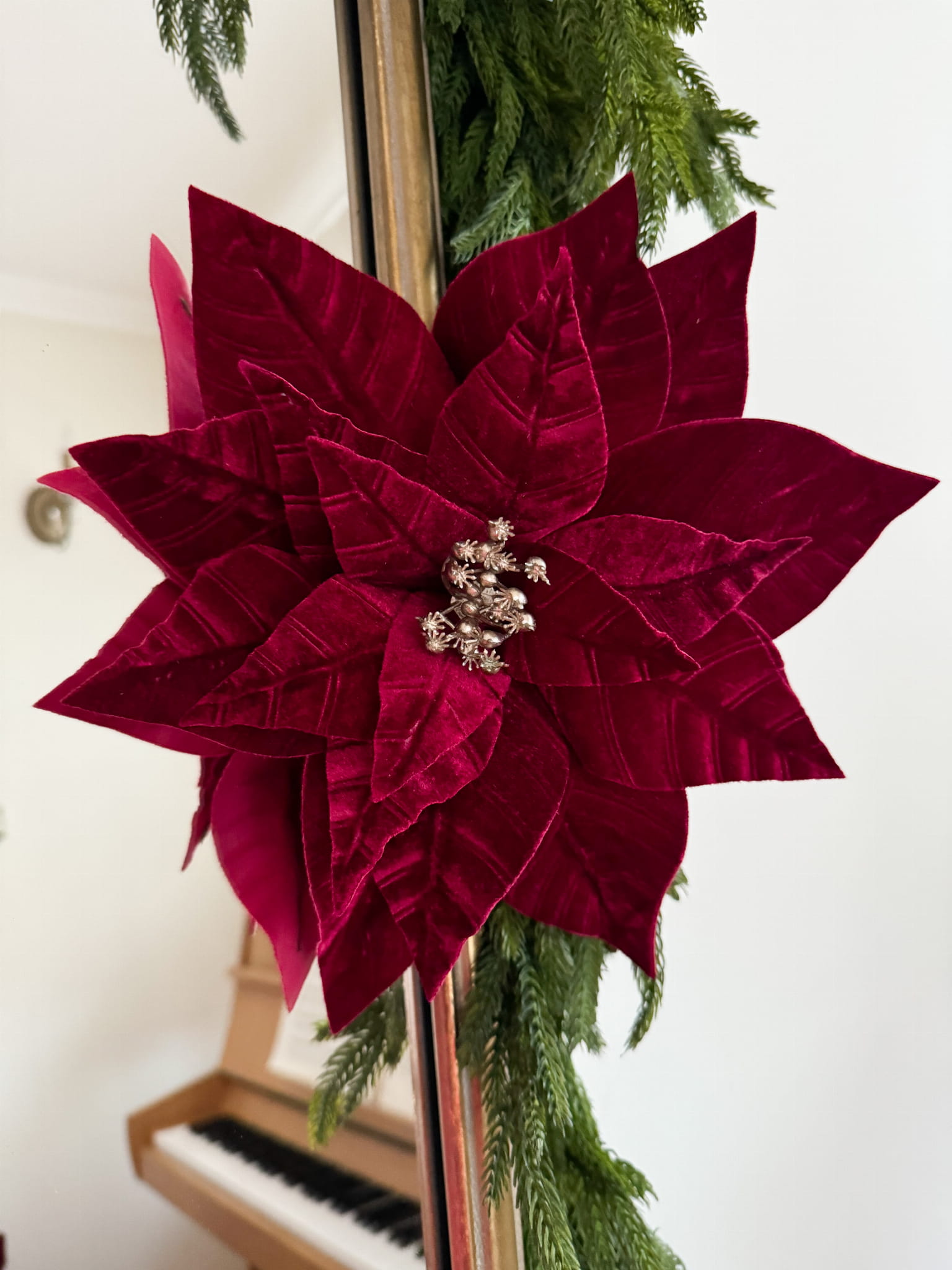 Kwiat sztuczny welurowy – Gwiazda Betlejemska w kolorze burgund