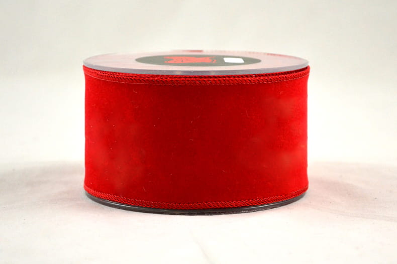 Czerwona welurowa wstążka usztywniana drutem na obrzeżach co pozwala na piękne formowanie z niej różnego rodzaju kształtu kokard.