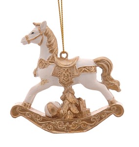 Urocza zawieszka w kształcie konika na biegunach wprowadza do wnętrza nostalgiczny, świąteczny klimat.