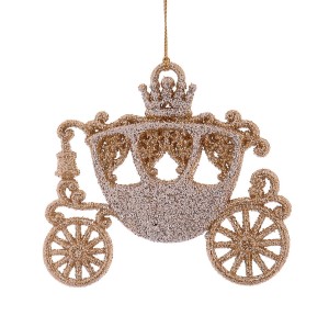 Zawieszka w kształcie złotej karety to idealny wybór dla miłośników eleganckich i niebanalnych ozdób. Ręcznie zdobiona, zachwyca połyskiem i precyzją wykonania – doskonale uzupełni świąteczną dekorację choinki lub stroika.