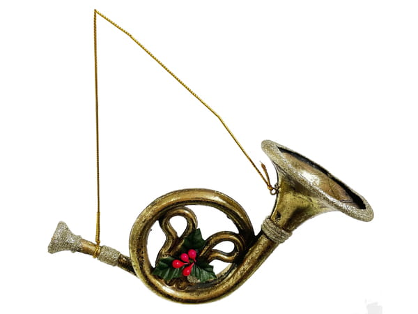Zawieszka, bombka w kolorze antycznego złota, długość - 21 cm.